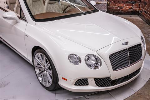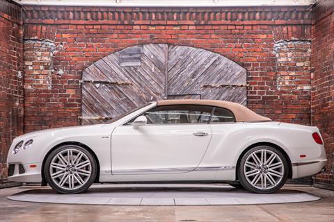 For sale is a 2014 Bentley Continental GTC Speed In Glacier White with Linen leather interior. Current mileage is 31,728 miles. The Continental GTC Speed is powered by a 6 liter twin turbo W12 producing 616 hp and 590 lb-ft of torque through a ZF 8 speed automatic transmission.