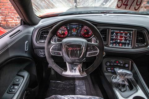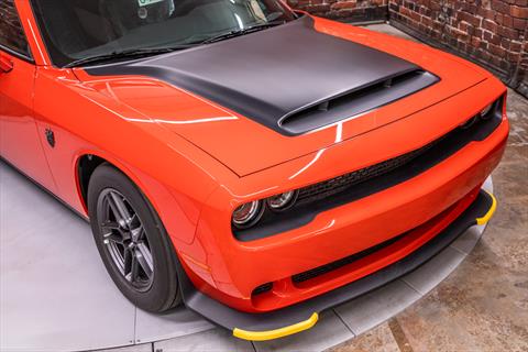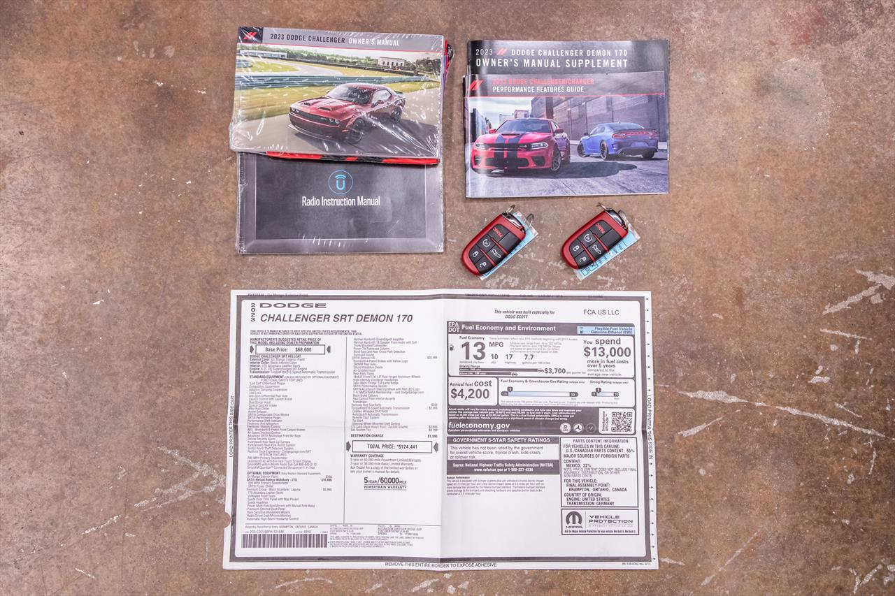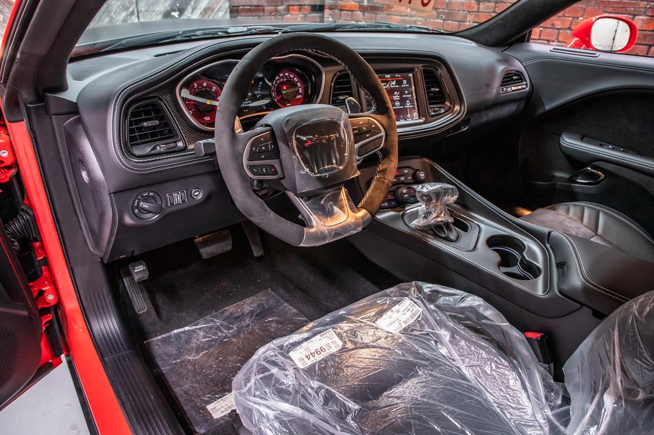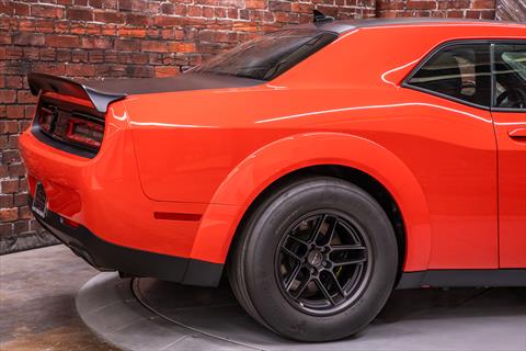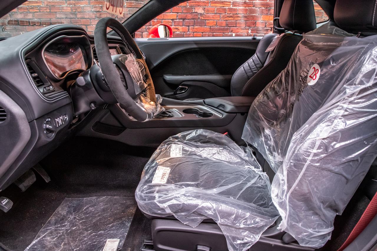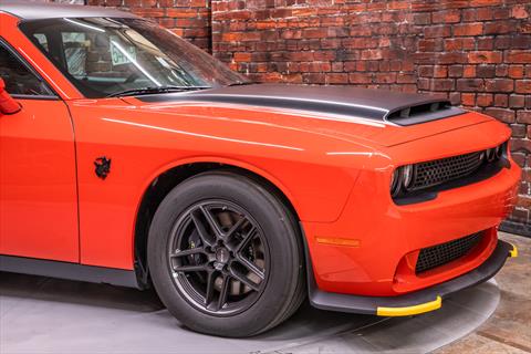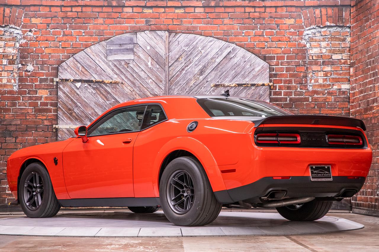 New Dodge Challenger SRT Demon 170 in Go Mango exterior with only 31 miles. The Demon 170 has a supercharged 6.2L Hemi V8 that produces 1,025 horsepower and 945 lb-ft of torque on E85 through an automatic transmission.