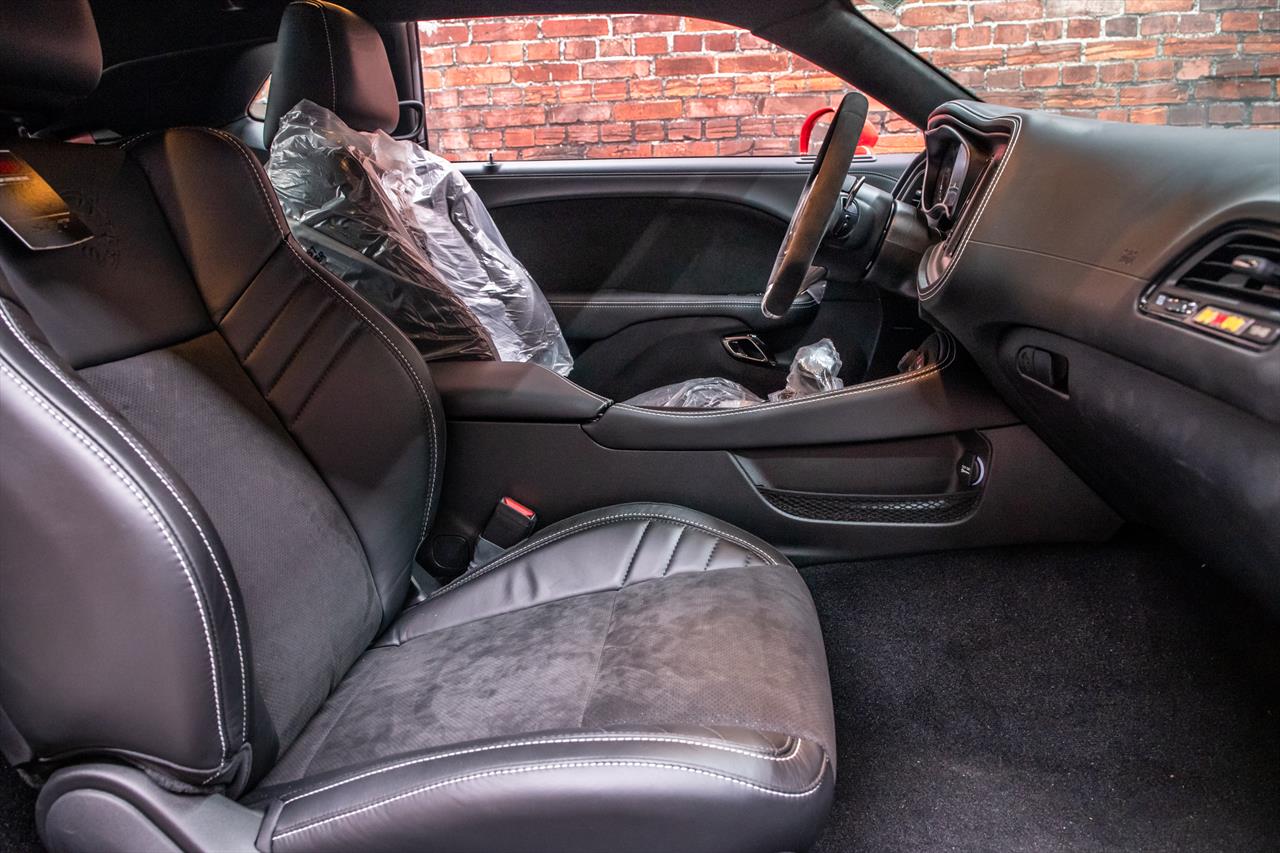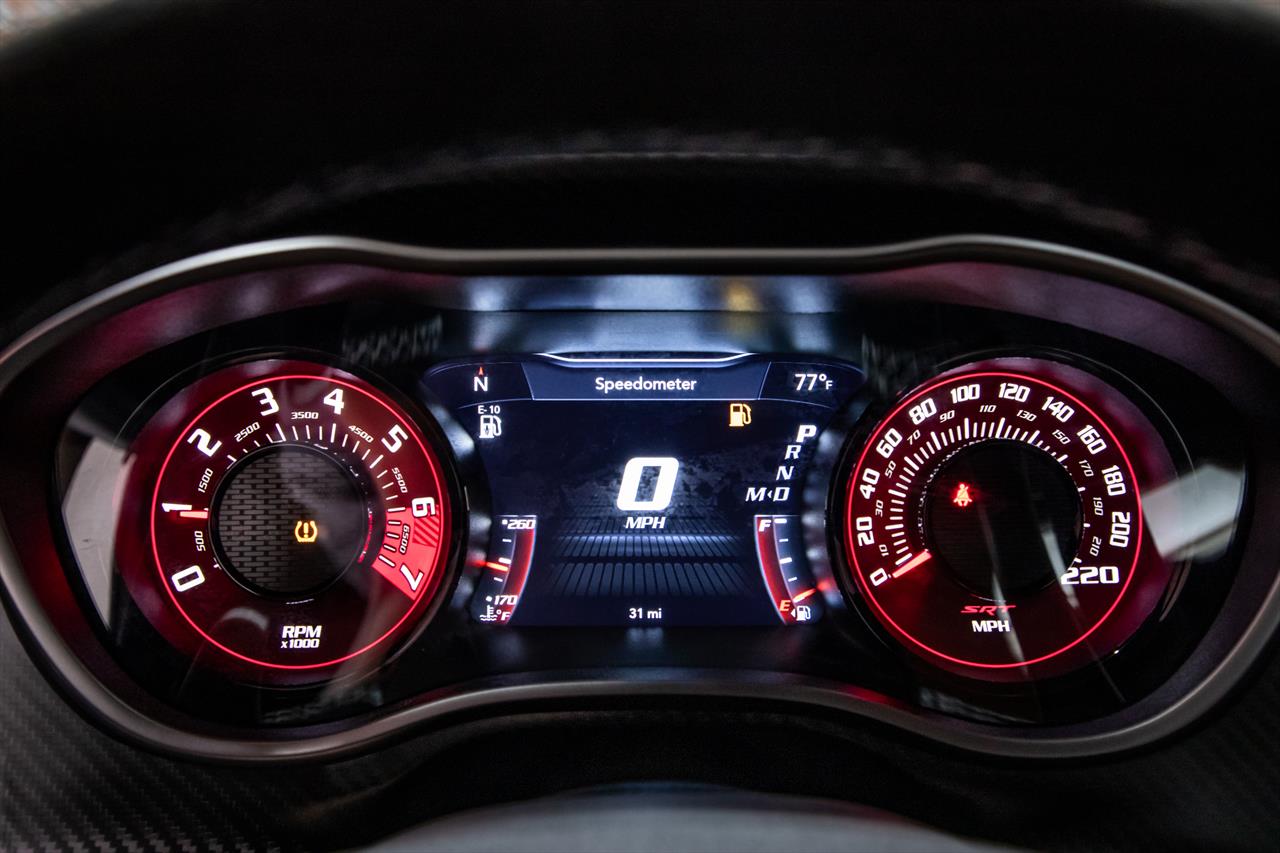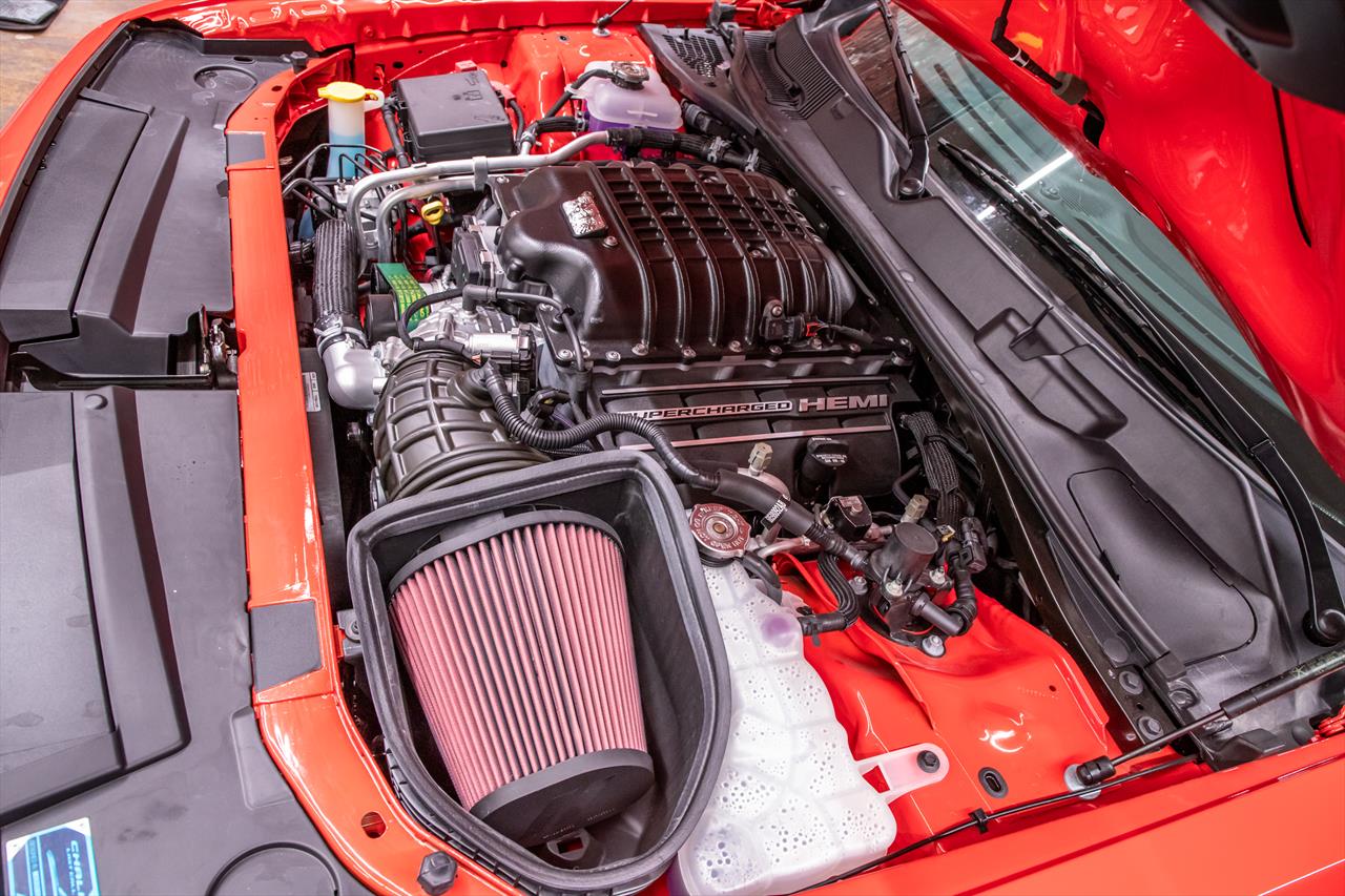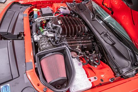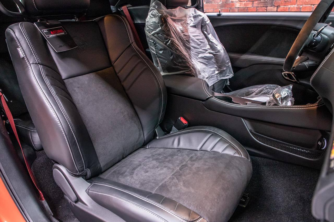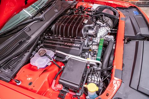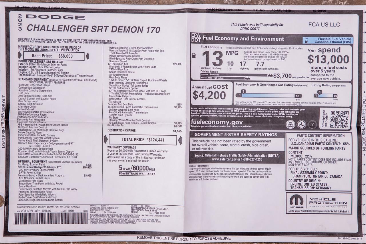 New Dodge Challenger SRT Demon 170 in Go Mango exterior with only 31 miles. The Demon 170 has a supercharged 6.2L Hemi V8 that produces 1,025 horsepower and 945 lb-ft of torque on E85 through an automatic transmission.