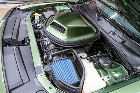 For sale is a 2020 Dodge Challenger R/T Scat Pack 50th Anniversary Limited Edition in F8 Green exterior with black interior. The car currently has 14,999 miles. This Challenger is powered by a 392 6.4L SRT Hemi V8 producing 485 bhp and 475 lb-ft of tq through an 8 speed automatic transmission. The 50th anniversary gets satin black hand painted hood, roof, and decklid with 50th anniversary badges. The interior gets nappa leather and alcantara seats with embroidered "50" logos, floor mats with "50' logos, and white faced gauge instrument cluster. This 50th anniversary also has a Mopar Shaker hood intake.