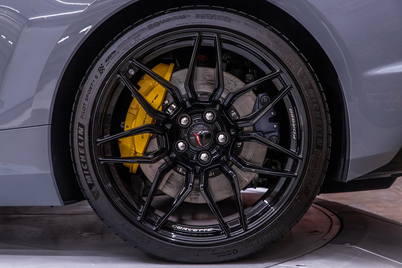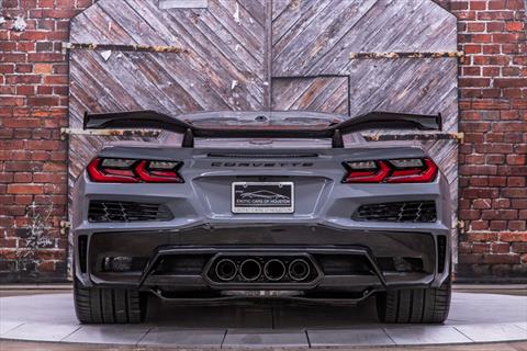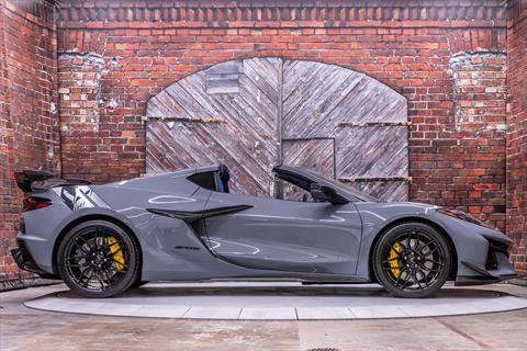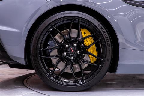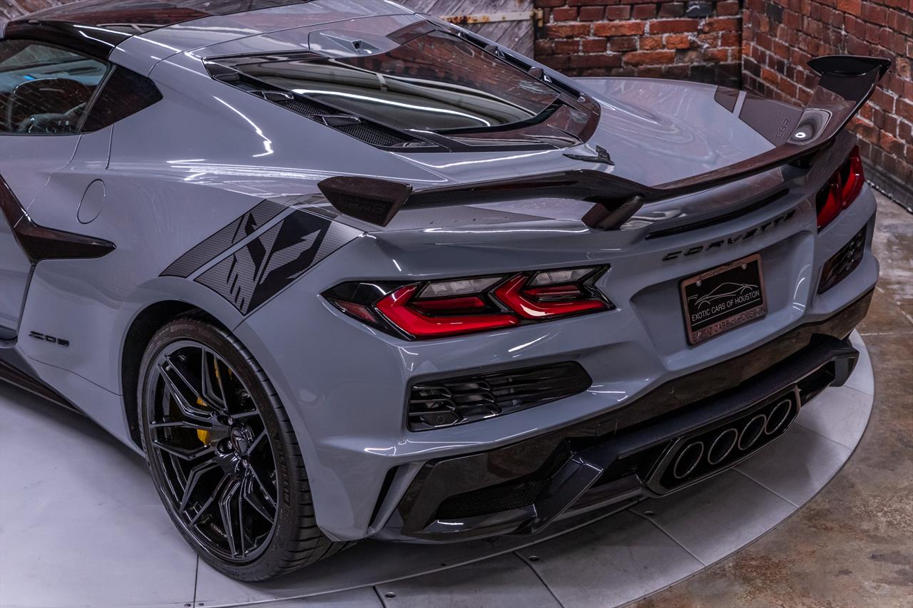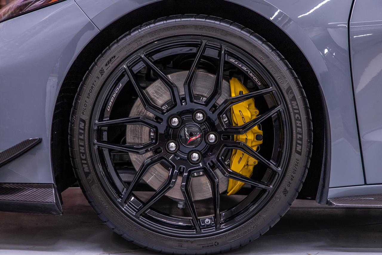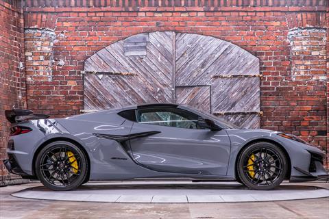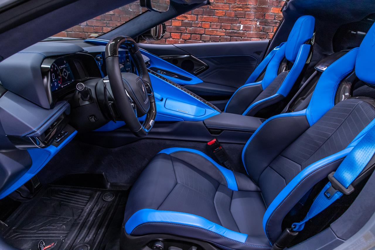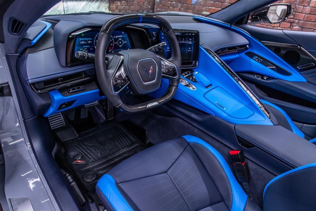 For sale is a 2025 Corvette Z06 3LZ with only 764 miles finished in Sea Wolf Grey Tricoat exterior with Tension/Twilight Blue leather interior. The C8 Z06 features a flat plane crank 5.5L v8 producing 670hp and 460 lb-ft of torque through a Tremec 8-speed dual clutch transmission.