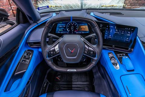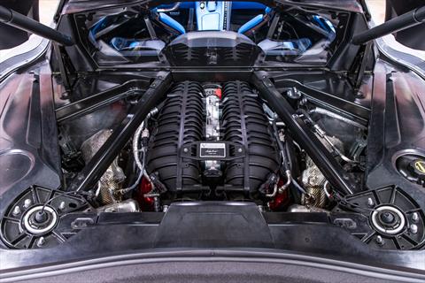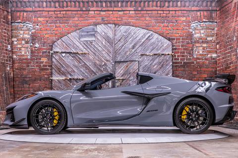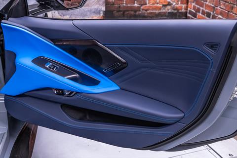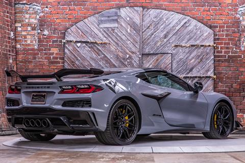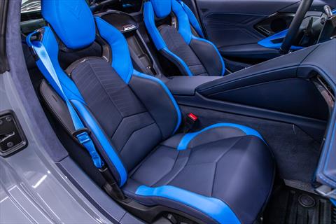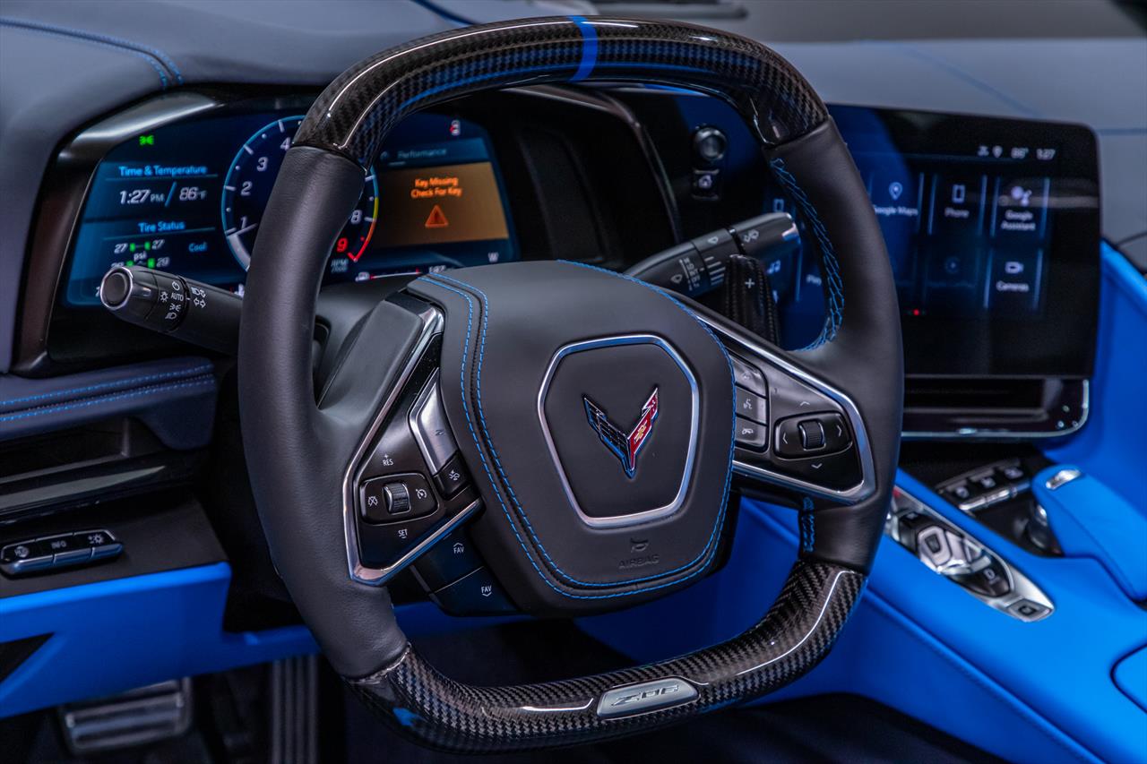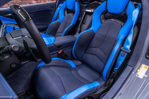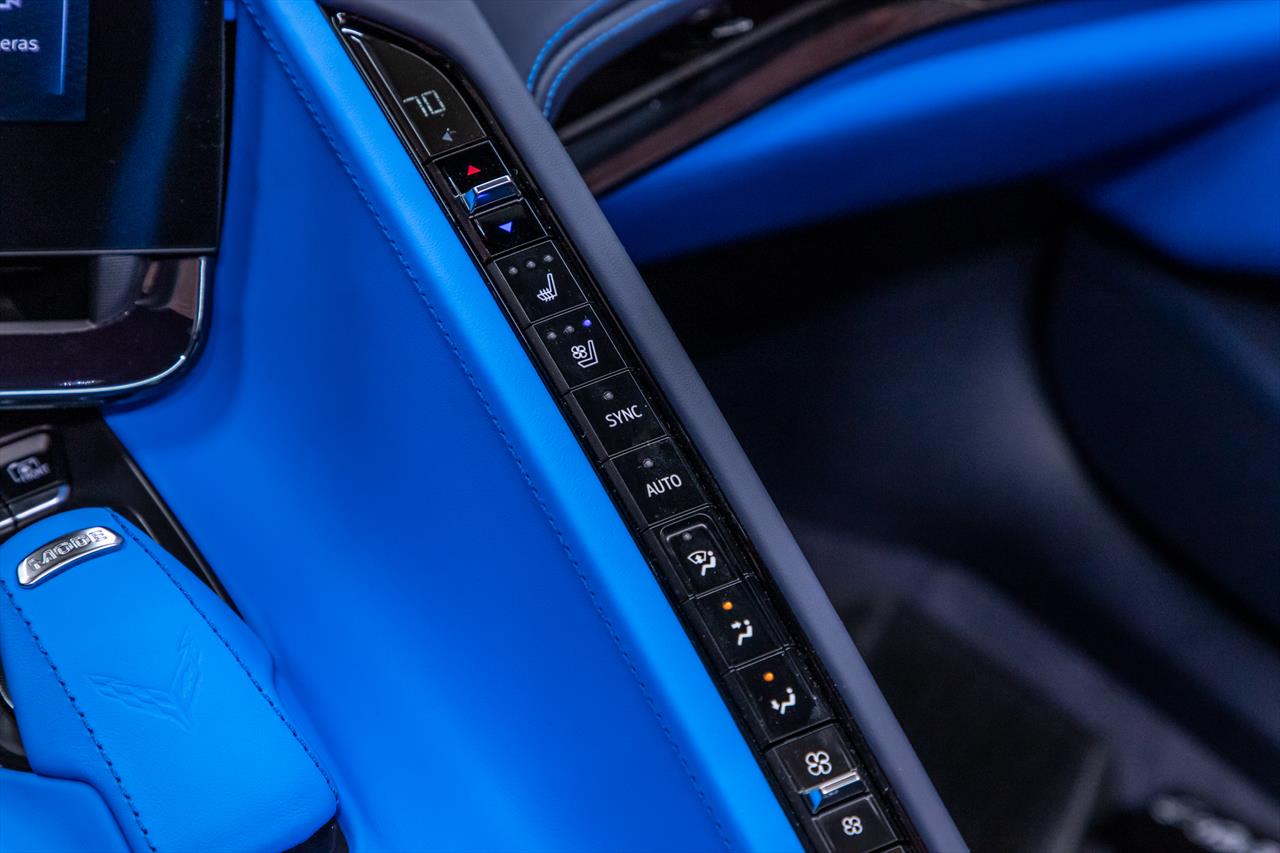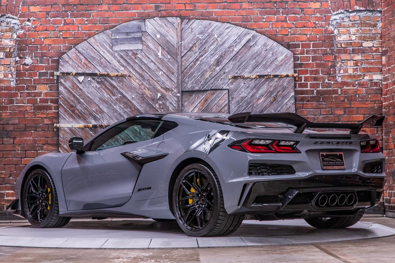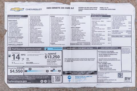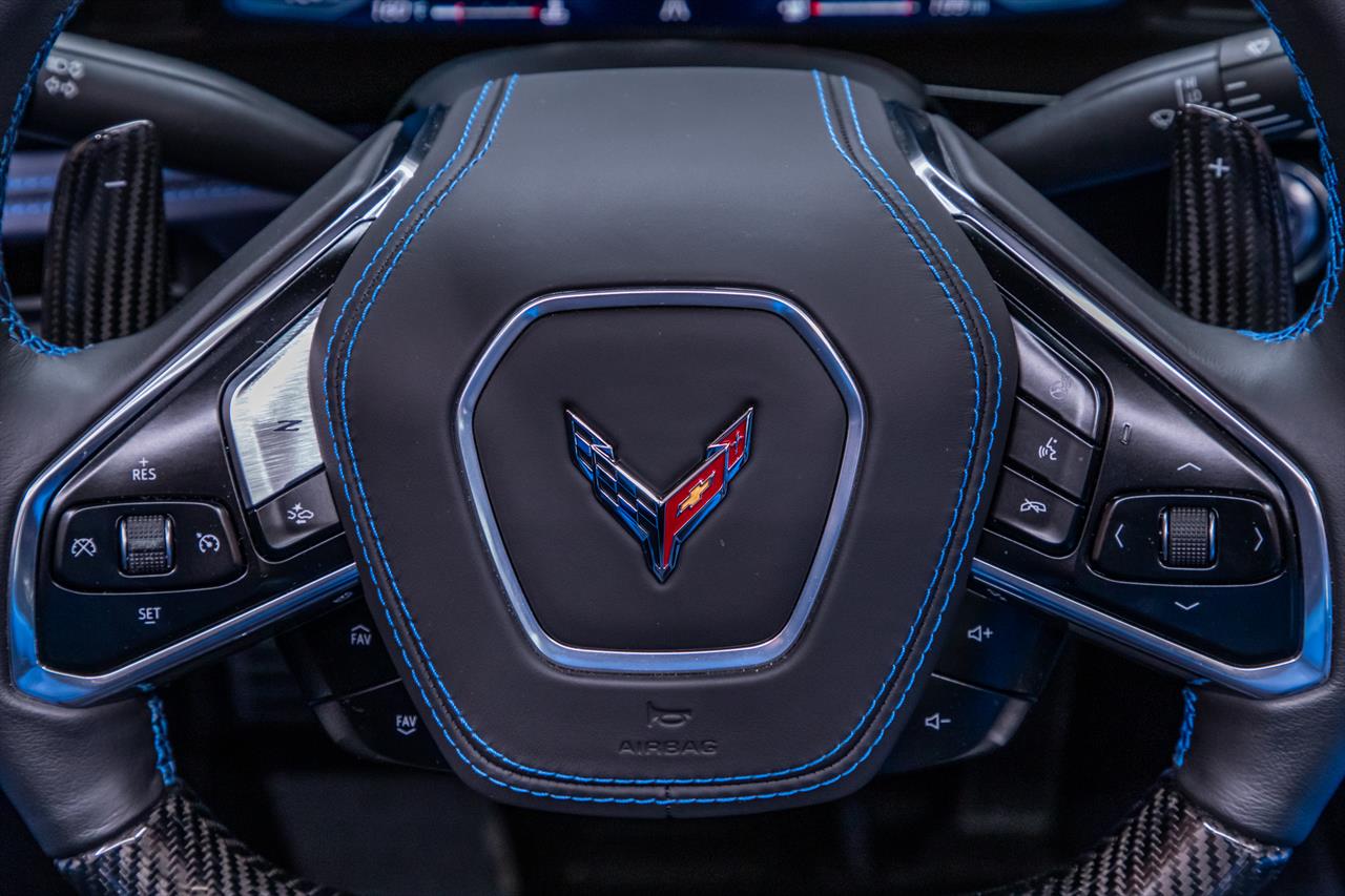 For sale is a 2025 Corvette Z06 3LZ with only 764 miles finished in Sea Wolf Grey Tricoat exterior with Tension/Twilight Blue leather interior. The C8 Z06 features a flat plane crank 5.5L v8 producing 670hp and 460 lb-ft of torque through a Tremec 8-speed dual clutch transmission.